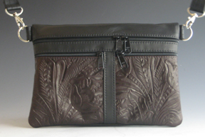 7x10" main compartment, 2 small ones in front for cell phone sized